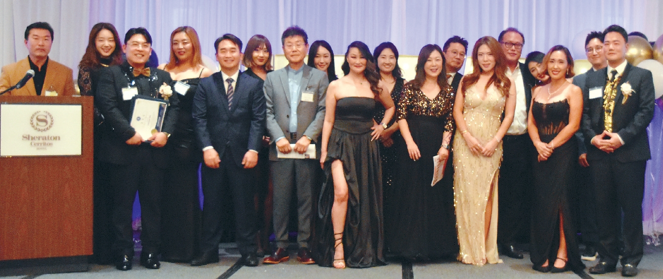 남가주한인부동산협회(회장 진 홍)가 지난 11일 세리토스 셰라톤 호텔에서 송년의 밤 행사 및 회장 이·취임식을 성황리에 개최했다. 이날 프레드 정 풀러턴 시장, 조이스 안 부에나파크 시장, 협회 관계자 등 120여 명이 참석한 가운데, 이든 백 현 이사장이 37대 회장으로 취임했다. (앞줄 오른쪽부터) 백 차기 회장과 크리스틴 신 사무국장, 진 홍(앞줄 왼쪽에서 두 번째) 회장 등 관계자들이 행사 후 모여 기념사진을 촬영했다.