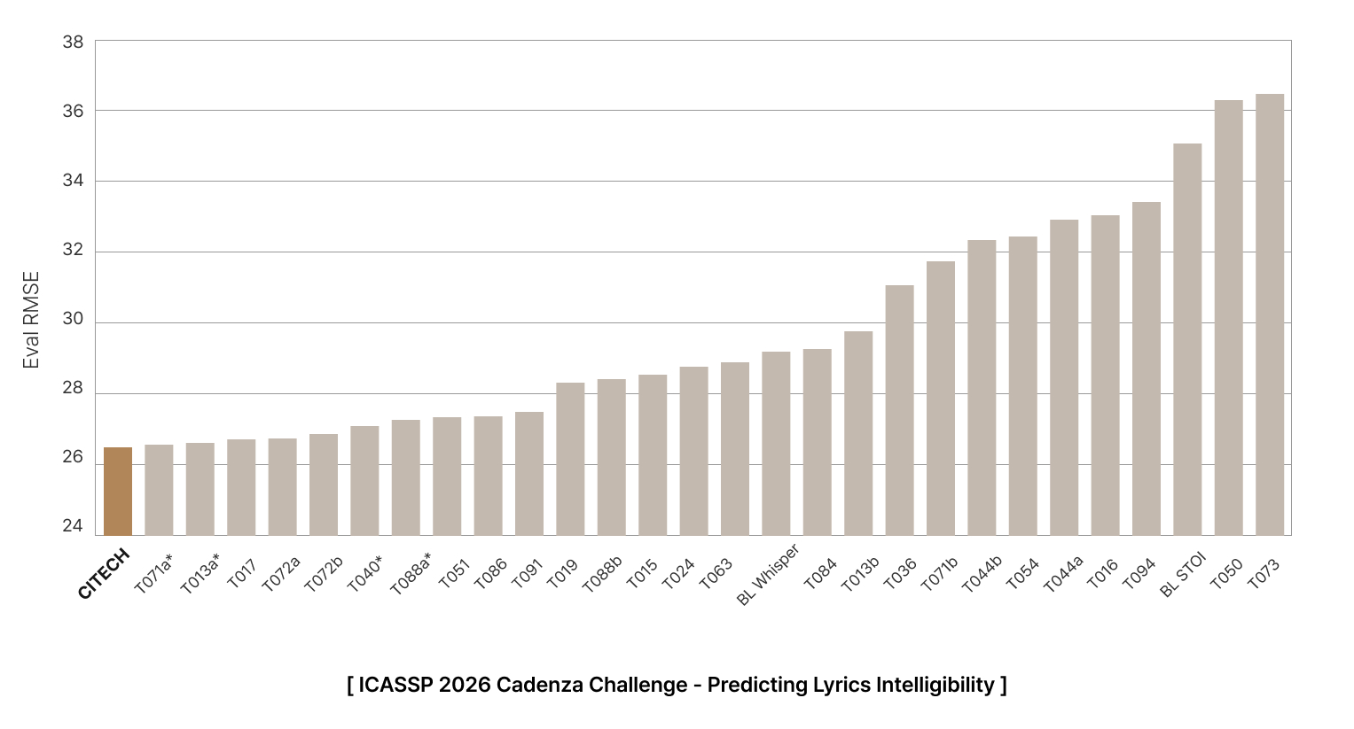 씨아이테크는 2026 IEEE ICASSP(International Conference on Acoustics, Speech and Signal Processing)가 주관하는 CLIP(Cadenza Lyric Intelligibility Prediction) Challenge에서 총 22개 팀, 27개 시스템 가운데 최종 1위를 기록했다.