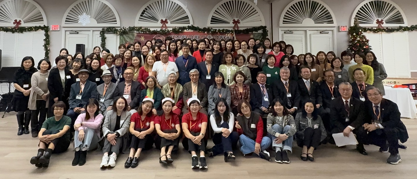 지난 13일 캘리포니아 컨트리클럽에서는 미주한국학교총연합회 ‘제43회 장기 근속교사 포상 및 송년의 밤’ 행사가 열렸다. 이날 윤주원 베델 한국학교 교장이 신임 회장으로 취임했다. 발렌시아 한국학교 홍연숙(90) 교장은 30년 근속상을 수상해 참석자들의 박수를 받았다. 주말 한국학교를 이끄는 교직원들이 기념촬영을 하고 있다.