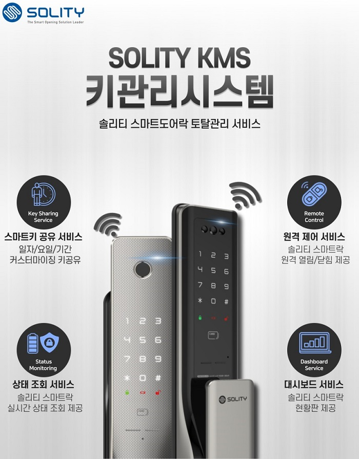 통합 스마트 보안 솔루션 기업 ㈜솔리티가 다수의 스마트 도어락을 중앙에서 통합 관리하는 키 관리 시스템(KMS)을 출시했다고 밝혔다.