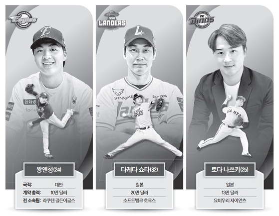 KIA 타이거즈를 제외한 9개 구단이 빠르게 선수 영입을 마쳤다. 대세는 ‘일본인 투수’다. 모두 투수를 뽑았고, 그중 7명이 일본 국적이다. 호주 국적의 라클란 웰스(LG 트윈스), 대만 국적의 왕옌청(한화 이글스)만이 예외다. 다만 왕옌청도 올해 일본프로야구(NPB) 2군에서 뛰었으니 일본 리그에서 온 투수 8명이 내년 한국 무대에 첫선을 보인다. 주전 유격수 박찬호를 두산으로 보낸 KIA만 호주 국적 내야수를 선발할 계획이다.