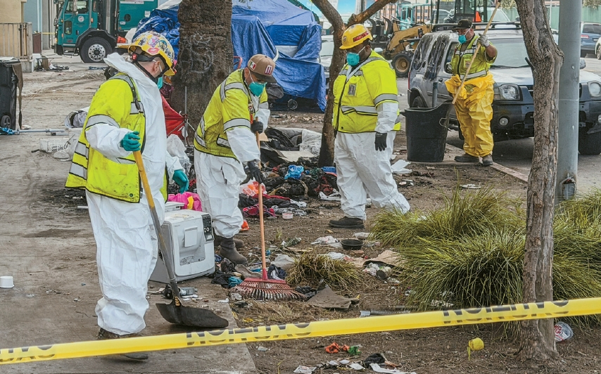 17일 LA 한인타운 윌셔 불러바드 일대에서 홈리스 텐트촌 철거 작업이 진행됐다. 이날 철거는 윌셔 불러바드와 맨해튼 플레이스 코너, 윌셔 불러바드와 후버 스트리트 교차로 등 두 곳에서 실시됐다. LA시 위생국 직원들은 현장에 방치된 쓰레기와 불법 구조물 등을 정리했다.