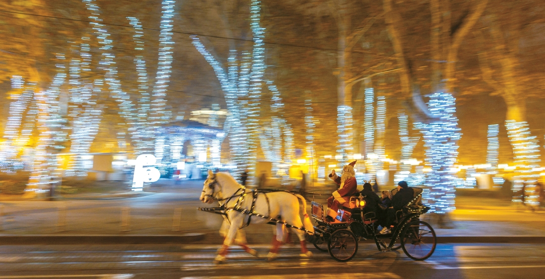 성탄을 앞두고 전세계 산타들이 분주해지는 때다. 지난 16일 크로아티아 자그레브 도심에서 '대림절(Advent)' 시즌을 맞아 산타클로스 복장의 남성이 말이 끄는 마차를 몰고 있다. 이 맘때면 자그레브는 도심 공원과 광장 곳곳을 조명으로 꾸미고, 즈리네바츠(Zrinjevac) 공원 등에서 크리스마스 마켓과 공연·체험 프로그램을 운영한다. 사진 속 '산타의 마차 체험(Santa's Horse Carriage Ride)'도 체험 프로그램중 하나다.