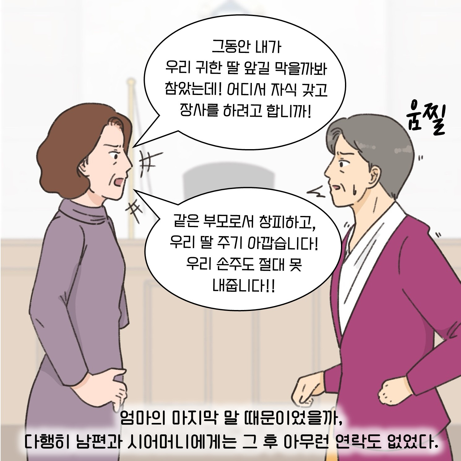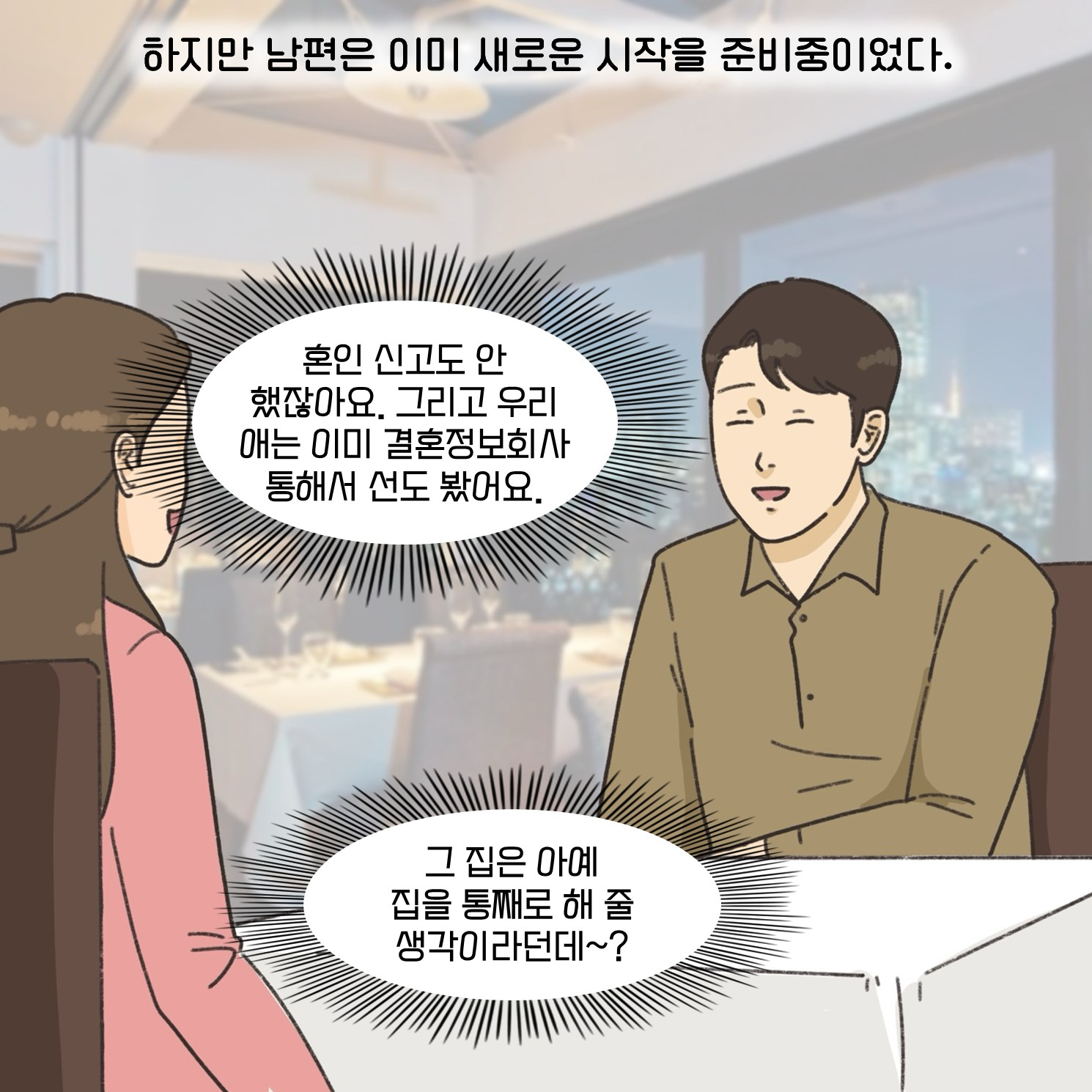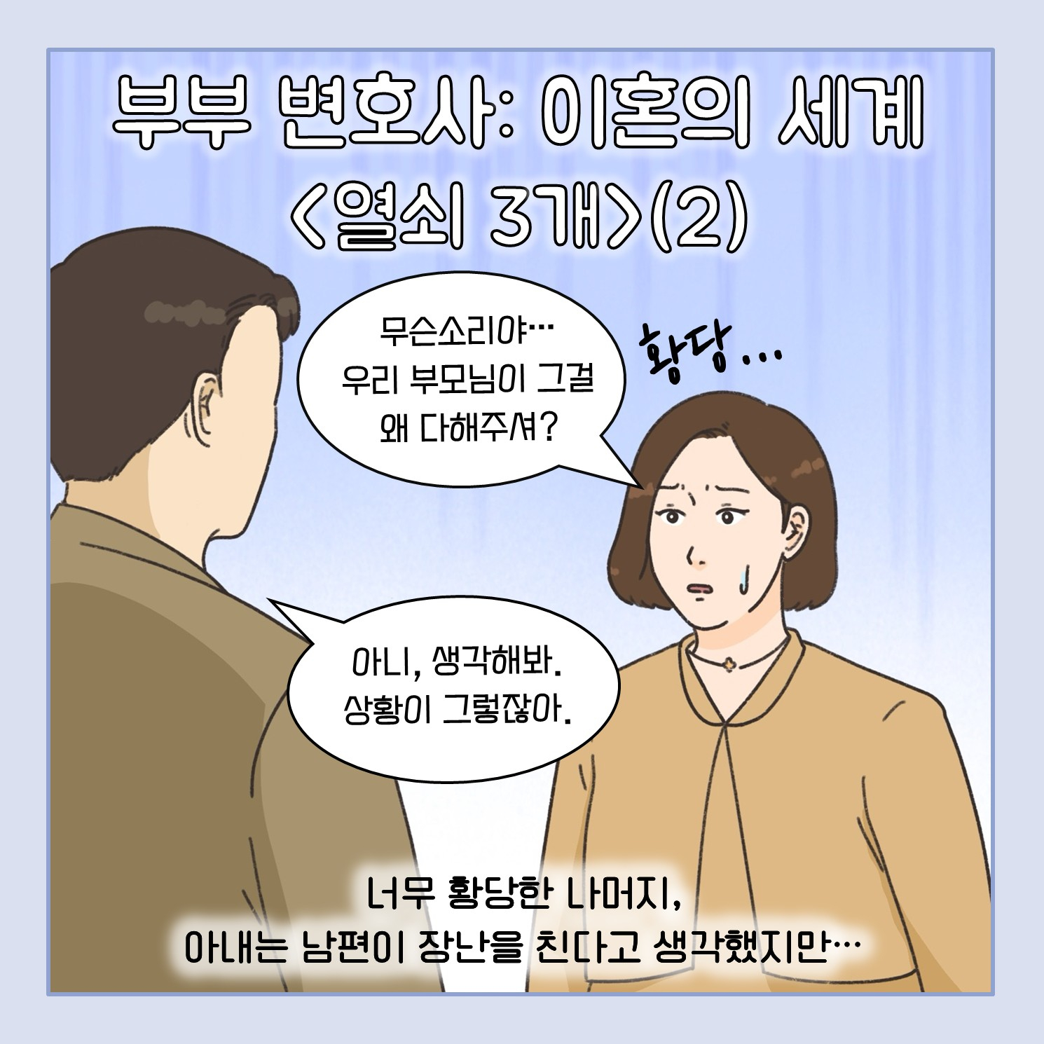 (※이 기사는 이혼 소송 과정에서 필요한 법률 지식을 웹툰 형식으로 이해하기 쉽게 제공할 목적으로 제작됐습니다. 실제 사례를 각색한 내용으로 언급되는 이름과 지명 등이 실제와 같은 경우가 있더라도 이는 우연에 의한 것임을 밝힙니다.)