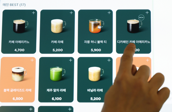 20일 엠브레인 딥데이터의 분석에 따르면, 최근 1년간 주요 커피 전문점에서 판매된 디카페인 관련 제품의 구매 추정액은 2926억원으로, 전년 동기 대비 55.2% 증가했다. 사진은 이날 서울시내 커피 전문점에 설치된 키오스크. [뉴시스]