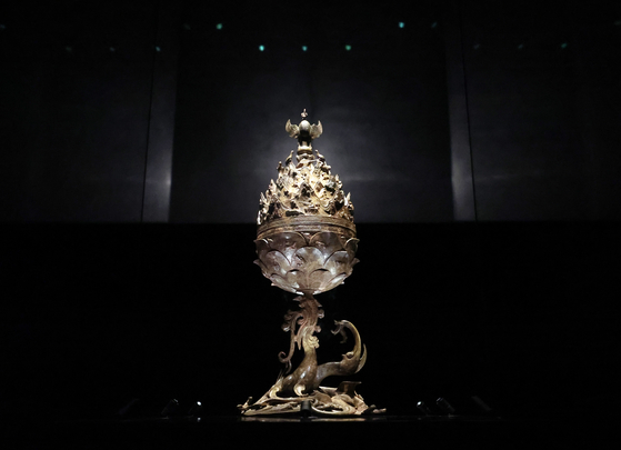 국보 ‘백제금동대향로’만을 위한 전용 전시관 ‘백제대향로관’이 23일 충남 부여 국립부여박물관에서 개관한다. 백제금동대향로는 지난 1993년 12월 부여 능산리 절터에서 발굴된 높이 64㎝의 대형 향로다. 용과 봉황, 신선과 동물, 악기를 연주하는 다섯 연주자 등으로 이뤄진 독창적인 조형으로 백제인의 세계관과 사상을 보여준다. 국립부여박물관은 백제금동대향로의 예술적·사상적 의미를 조명하기 위해 5년간의 준비를 거쳐 전용 전시 공간을 마련했다. 밝기를 달리한 두 공간으로 구성하며 다양한 방식으로 국보를 체험할 수 있도록 했다. [사진 국립부여박물관, 연합뉴스]