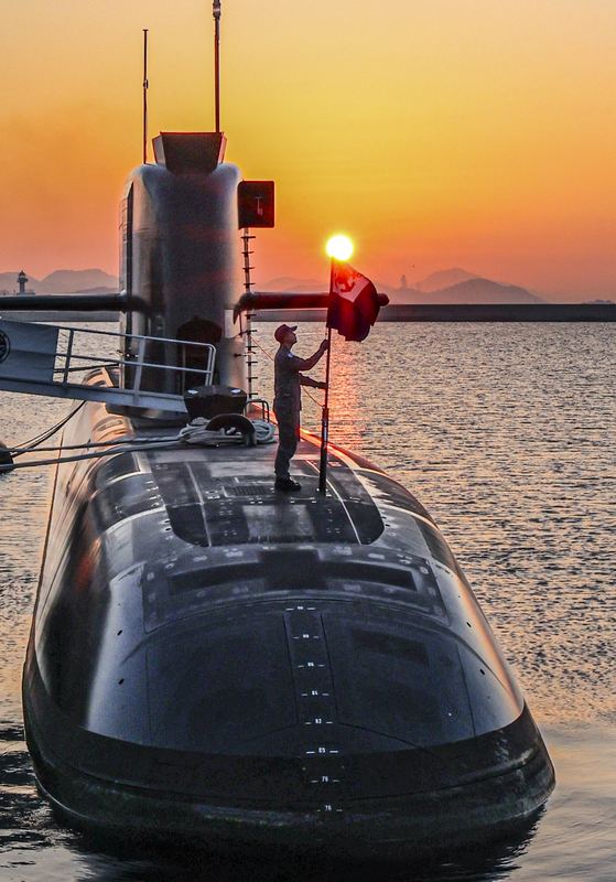 한국 독자 기술로 설계하고 건조한 3000t급 잠수함인 ‘신채호함’이 경남 진해시 해군 잠수함사령부에 정박해 있다. 신채호함은 유도탄, 어뢰, 기뢰 등 다양한 무기와 잠수함발사탄도미사일(SLBM)을 쏘아올릴 수 있는 수직발사관을 탑재하고 있다. [뉴시스]