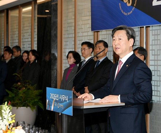 국민대학교(총장 정승렬)가 지난 1월 5일(월) 오전 대회의실에서 2026년 시무식을 열었다. 이 날 행사에는 학교법인 김지용 이사장과 정승렬 총장을 비롯한 처장단 및 교직원 약 150여명이 참석했다.