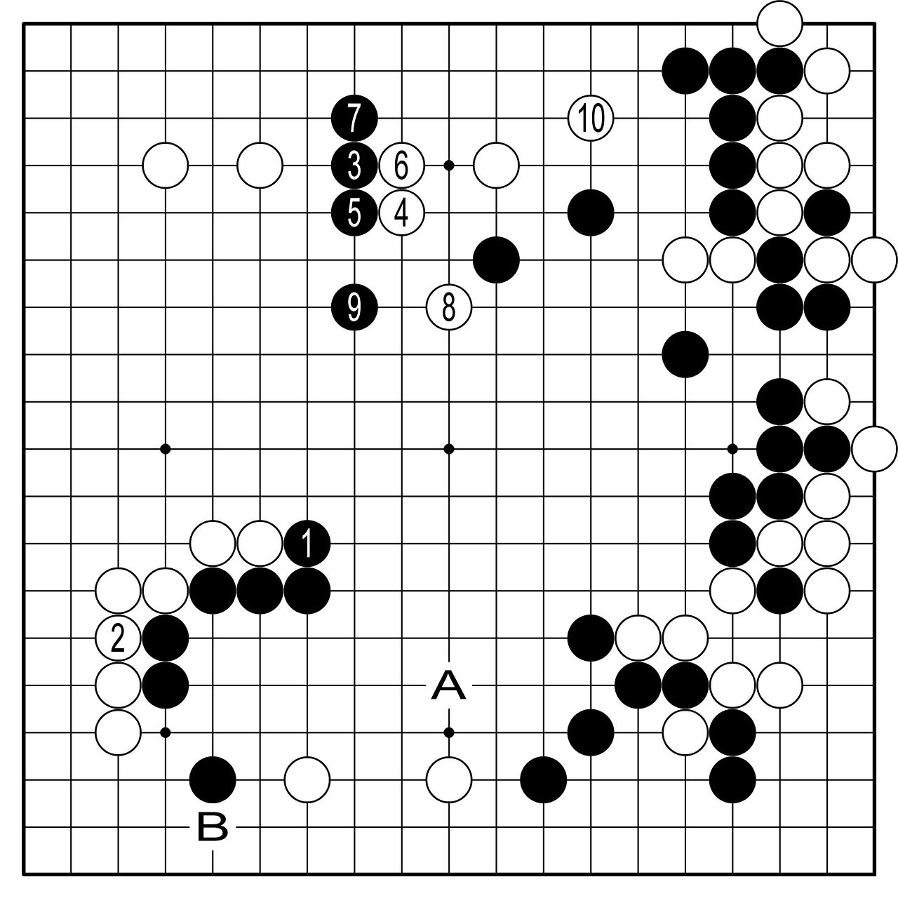 장면⑤=하변의 백 두 점은 공략이 쉽지 않다. A쪽으로 품을 넓히는 수와 B에 붙이는 맥점이 맞보기여서 백의 탄력이 상당하다. 스웨는 공격을 보류하고 흑1로 꼬부려 동태를 본다. 박정환도 스산한 분위기를 감지하고 백2로 자중한다. 백2는 하변 백 두 점을 은근히 돕고 있다. 여기서 스웨는 흑3으로 갈라쳐 상변 공략에 나선다. 바둑이 두텁게 짜이면 다음 수가 잘 보인다. 반면 엷게 짜이면 다음 수가 어렵다. 고심 끝에 백10으로 달려 근거를 잡으려 했으나 이 수는 조금 문제였다. 급소가 드러났는데 그곳은 어디일까.