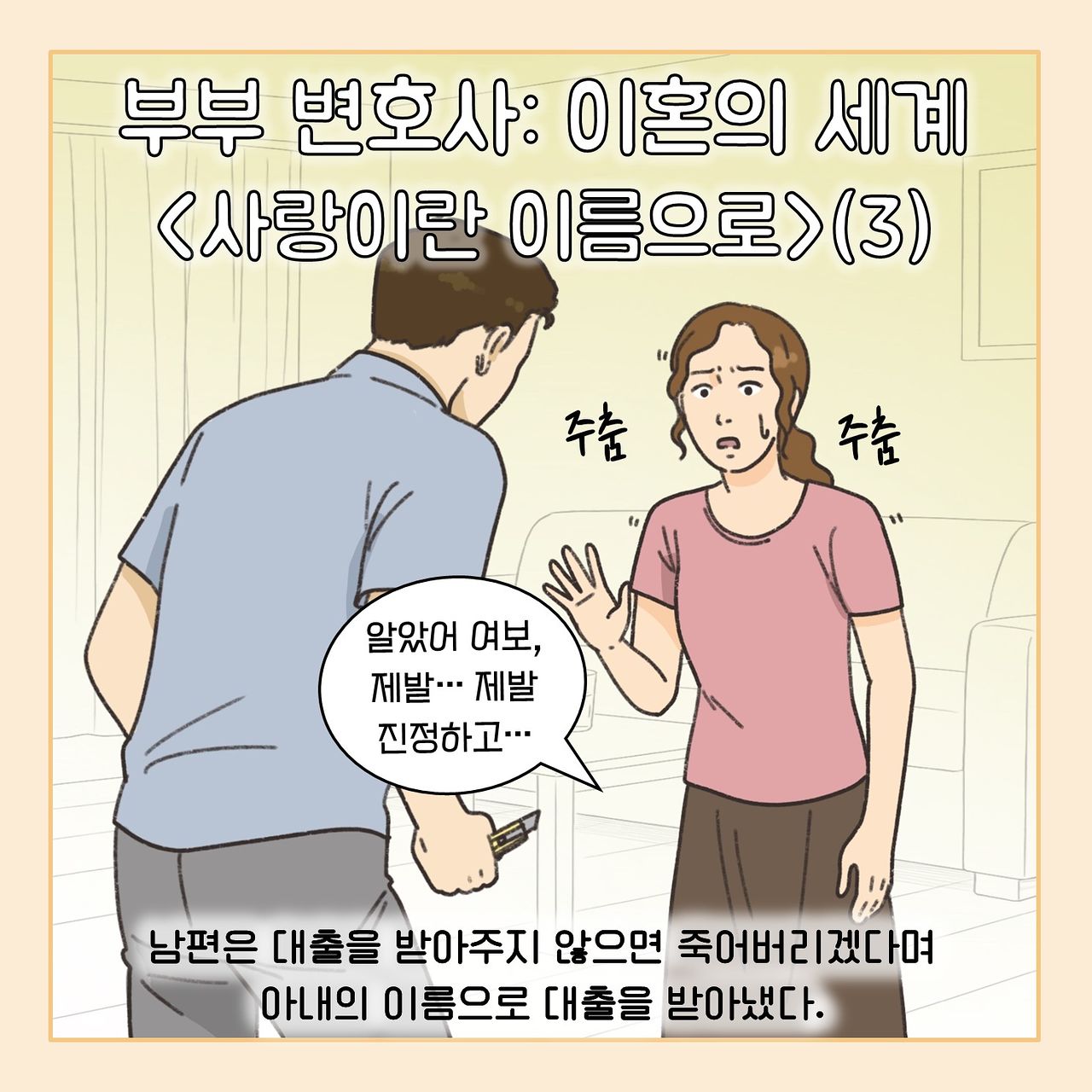 (※이 기사는 이혼 소송 과정에서 필요한 법률 지식을 웹툰 형식으로 이해하기 쉽게 제공할 목적으로 제작됐습니다. 실제 사례를 각색한 내용으로 언급되는 이름과 지명 등이 실제와 같은 경우가 있더라도 이는 우연에 의한 것임을 밝힙니다.)
