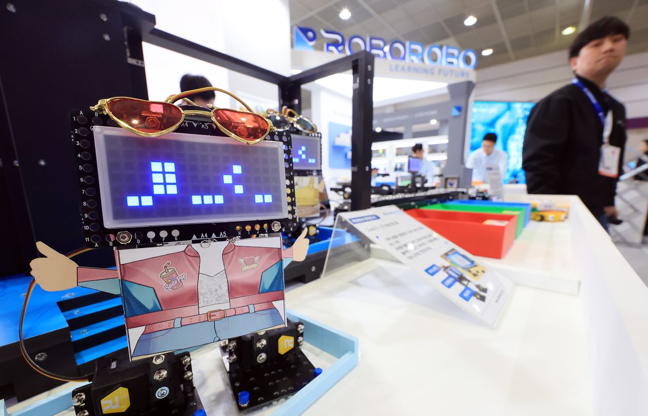 21일 서울 강남구 코엑스에서 열린 ‘2026 대한민국 교육박람회’를 찾은 관람객이 로봇 댄스팀 부스를 둘러보고 있다. 박람회에 참여한 국내외 에듀테크 기업들은 AI 시대를 넘어 AGI(범용인공지능)로 확장되는 교육 환경에 대응할 신기술들을 선보인다. [뉴스1]