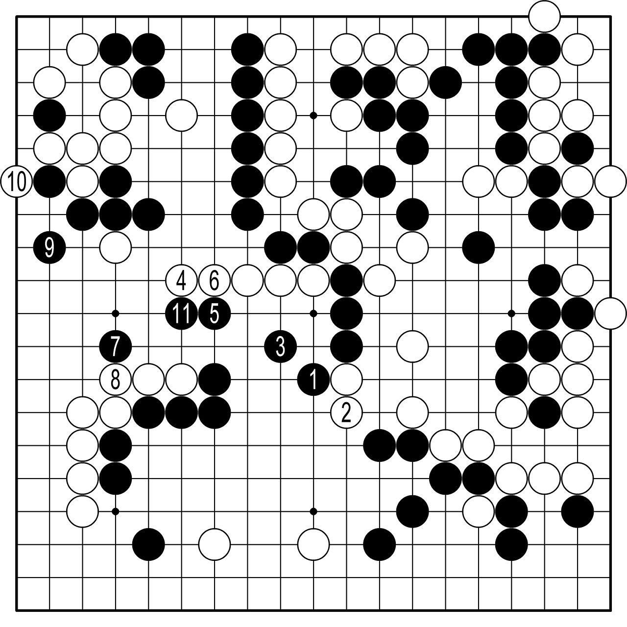 ◆실전 진행=실전을 먼저 본다. 백6은 강한 버팀수. 흑7과 9까지 모두 선수라 백이 몹시 위태로워 보이지만 박정환 9단은 태연히 다 받아준다. 스웨는 드디어 11로 끊어왔다. 백은 갈 곳이 없어 보인다. 그러나 결과를 먼저 말한다면 이 공격은 실패한다. 흑은 백 돌을 잡고도 손해를 보는 것이다.