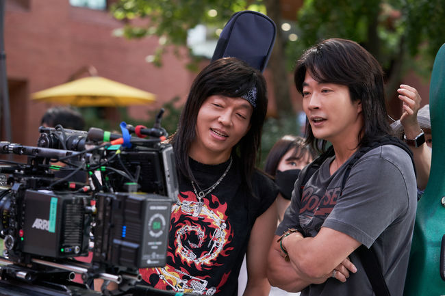 이어 카메라 모니터를 바라보며 장면을 점검하는 권상우와 박지환 그리고 표지훈, 최원섭 감독의 모습도 담겨 있어 디테일한 호흡과 타이밍을 꼼꼼히 맞추는 과정 속에서도 웃음이 끊이지 않는 현장은 영화 속 유쾌한 에너지가 어디에서 비롯됐는지를 짐작하게 한다. 뿐만 아니라 앰뷸런스 록밴드의 콘셉트가 돋보이는 스틸은 영화 속 음악과 코미디가 결합된 장면의 탄생 비화를 엿보게 한다.