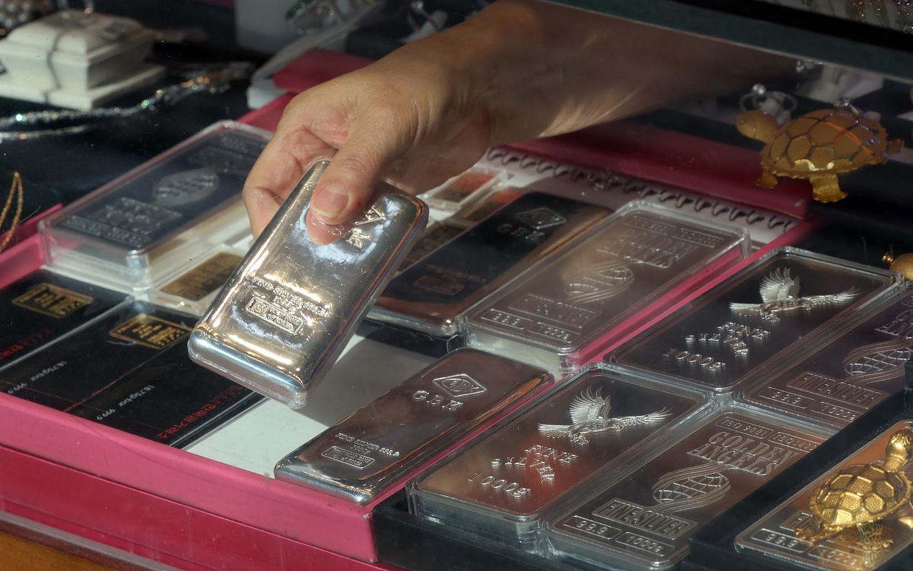 국제 은 가격이 사상 처음으로 장중 트로이온스당 100달러 선을 넘어섰다. 국제 금 가격도 사상 최고치를 경신하며 트로이온스당 5000달러 돌파를 눈앞에 두고 있다. 사진은 25일 서울 종로구 귀금속 상가 진열대에 놓인 실버바. [연합뉴스]