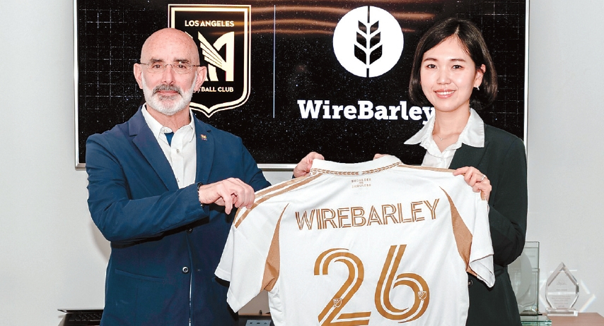 핀테크 기업 와이어바알리는 지난 26일 메이저리그사커(MLS) 구단 LAFC와 파트너십을 체결을 통해 해외 송금 분야에서 LAFC의 공식 파트너로 활동한다고 밝혔다. 와이어바알리는 한국과 미국 등 7개 국가에서 총 46개 국가로 해외 송금서비스를 제공하고 있다. 파트너십 체결 후 래리 프리드먼(왼쪽) LAFC 공동대표와 전윤하 와이어바알리 북미법인장이 LAFC 유니폼을 들어보이고 있다.
