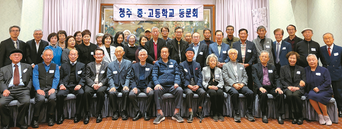 남가주 청주중고 동문회는 지난 17일 용수산에서 총동문회 및 신년하례식을 열었다. 이날 행사에는 동문 약 50명이 참석해 새해 덕담을 나누며 2026년도 비전과 상호 격려의 시간을 가졌다. 또한 신임 이사장으로 선출된 38회 김성교 씨와 유임이 결정된 42회 이창신 씨의 취임식도 함께 진행됐다. 행사에 참석한 동문들이 기념촬영을 하고 있다.