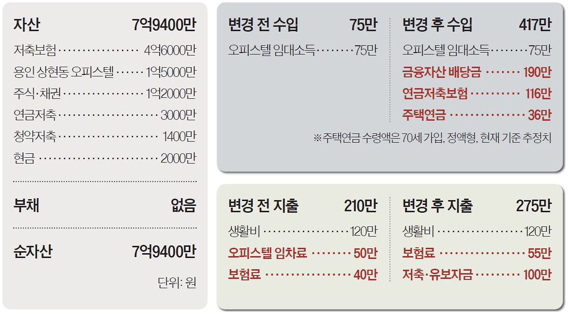 Q. 경기 성남 분당에 거주하는 김미영(60)씨는 미혼 은퇴자로 별도 근로소득이 없다. 용인 오피스텔에서 발생하는 월세 수입이 사실상 유일한 수입원이다. 현재 무주택 상태로 분당에서 월세를 살고 있어 지출 대비 가용 현금은 넉넉하지 않다. 홀로 노년기를 보내야 하는 상황이라고 밝힌 김씨는 “지금 가진 자산을 급격히 줄이지 않으면서 노후 생활에 실질적인 도움이 되도록 운용하고 싶다”고 말했다.