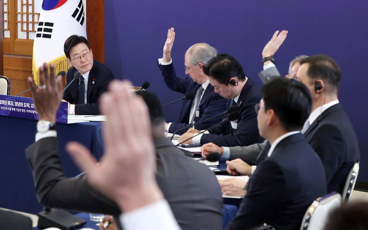이재명 대통령이 28일 열린 외국인투자 기업간담회에서 참석자들의 질문을 받고 있다. 이 대통령은 “외국인 투자는 대한민국 경제 성장의 핵심 축이었고, 앞으로도 중요한 역할을 할 것”이라며 예측 가능한 투자 환경 조성을 약속했다. [청와대사진기자단]