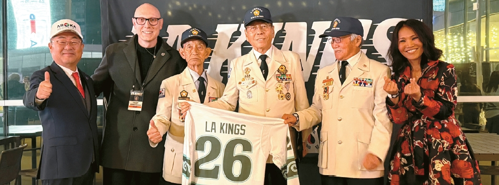 6·25 참전유공자회(회장 이재학)는 지난 20일 크립토 아레나에서 열린 LA킹스와 뉴욕 레인저스의 NHL 아이스하키 경기에 참석했다. 이날 LA킹스 구단은 6·25 참전유공자들의 헌신에 경의를 표하며 기념 특별 티셔츠를 증정했으며, 이재학 회장은 “한미동맹의 가치와 역사적 의미를 되새기는 자리였다”고 말했다. 경기에 초청된 참전용사들이 특별 티셔츠를 들고 기념촬영을 했다.