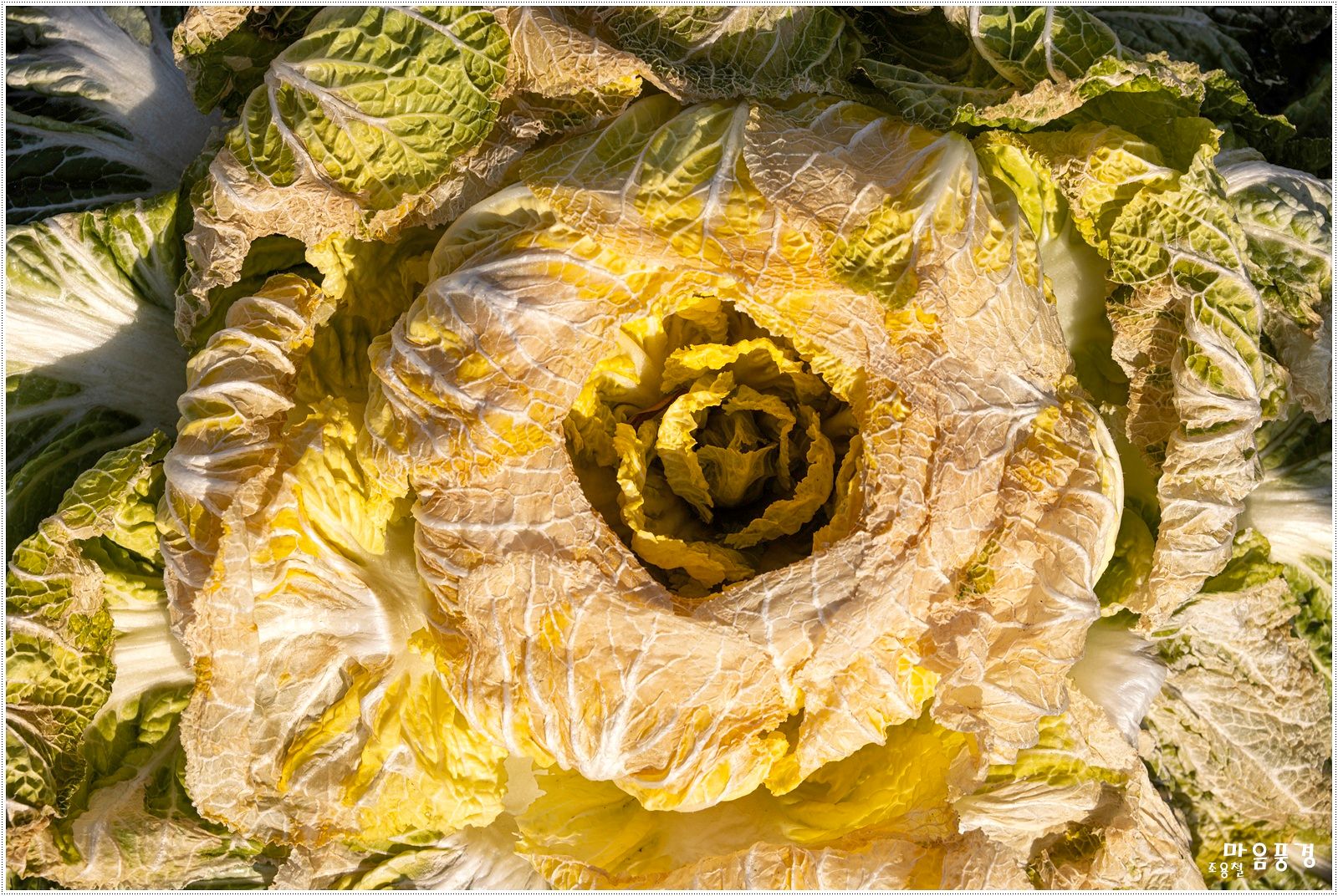 겨울 들녘에 버려진 배추가 황금빛을 품고 있다. 렌즈 24~240mm, iso 100, f11, 1/250초.