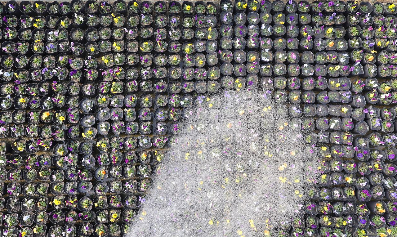 3일 오후 서울식물원 덕은양묘장에서 관계자가 올봄 거리와 공원 화단에 옮겨 심을 비올라 모종에 물을 주고 있다. 입춘인 오늘(4일) 전국 최저기온은 -8~2도 분포를 보이겠지만 낮에는 전국이 영상권을 회복하면서 평년보다 높을 전망이다.