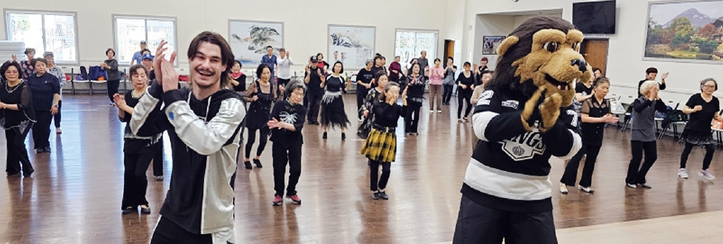 LA 지역 내셔널하키리그(NHL) 팀 LA 킹스 관계자들이 지난달 30일 한인 시니어들과 함께 트로트 댄스를 즐겼다. 구단 관계자들은 이날 LA 한인타운 시니어 & 커뮤니티 센터(회장 이현옥·이하 시니어센터)의 트로트 댄스 프로그램에 참여해 약 1시간가량 트로트 댄스를 배웠다. LA 킹스 측은 이를 계기로 트로트 댄스뿐 아니라 악기 연주 등 시니어들과 함께할 수 있는 다양한 프로그램으로 교류를 확대하겠다고 밝혔다.