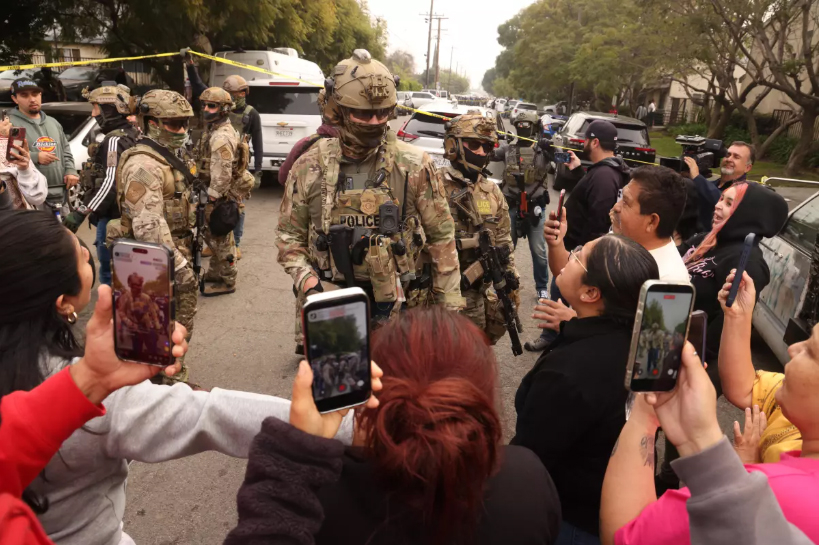 다수의 주민은 불법 체류 중인 범죄 혐의자를 표적으로 한 작전이란 해명에 수긍하지 않았다. 주민들은 당국이 과거에도 체포하거나 총격을 가한 인물들에 대해 허위 주장을 해왔다고 말했으며, 그중에는 미네소타에서 연방 요원의 총격으로 사망한 르네 굿과 알렉스 프레티를 '국내 테러리스트'로 규정한 사례도 포함돼 있다고 지적했다. 멕시코 국기를 들고 있던 로사 엔리케스(39)는 "그들은 스스로 신뢰할 수 없다는 것을 보여줬다"고 말했다.