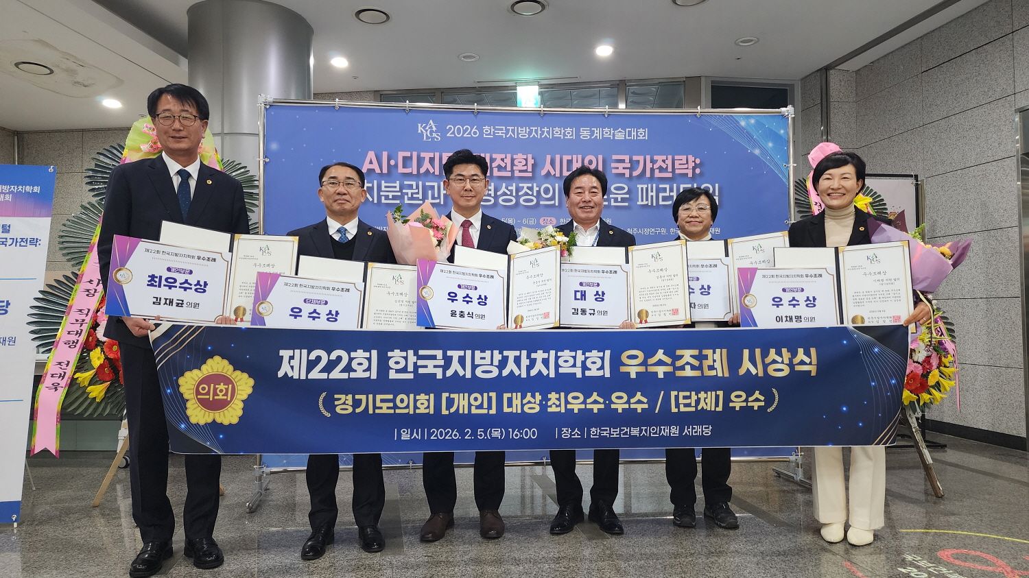 경기도의회(의장 김진경)가 5일 ‘제22회 한국지방자치학회 우수조례 시상식’에서 개인부문 대상과 단체부문 우수상 등 총 8건을 수상하며 전국 최고의 입법 역량을 입증했다.