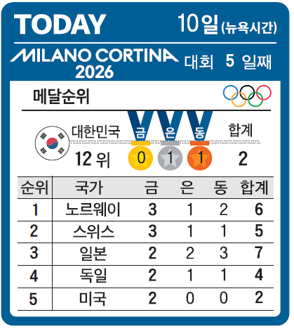 이날 밀라노 스피드스케이팅 스타디움에서 열린 스피드 스케이팅 여자 1000m에선 차세대 에이스 이나현이 1분15초76의 기록으로 9위에 올랐다. 그는 1992 알베르빌 동계 올림픽에서 유선희가 거둔 한국 선수 올림픽 여자 1000m 최고 순위(11위)를 34년 만에 경신했다.