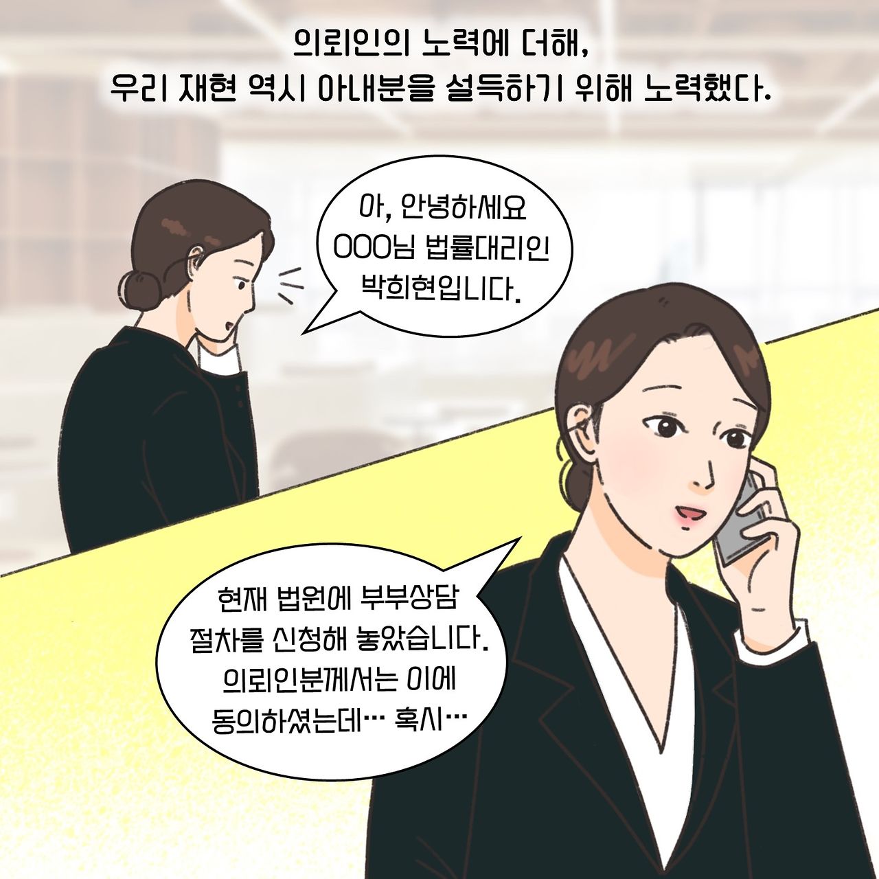 (※이 기사는 이혼 소송 과정에서 필요한 법률 지식을 웹툰 형식으로 이해하기 쉽게 제공할 목적으로 제작됐습니다. 실제 사례를 각색한 내용으로 언급되는 이름과 지명 등이 실제와 같은 경우가 있더라도 이는 우연에 의한 것임을 밝힙니다.)