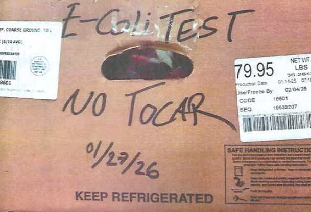 문제 제품은 ‘비프 코스 그라운드(Beef Course Ground) 73L’ ‘파이어 리버 팜스 클래식 비프 파인 그라운드(Fire River Farms Classic Beef Fine Ground·73L· 81L)’ 10파운드 포장(사진)으로 사용·냉동 기한 표시는 2026년 2월 4일이다. 해당 제품은 일반 소매점이 아닌 식당·급식업체 등에 납품된 것으로 확인됐다.