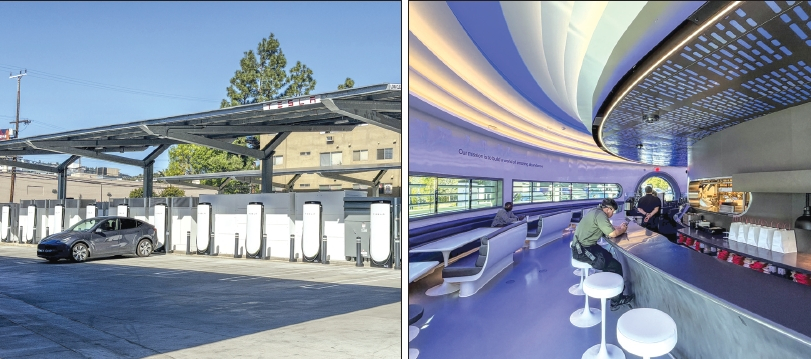 세계 최초로 문을 연 테슬라 다이너는 ‘자동차 문화의 본고장’ 미국의 과거와 현재, 미래를 담은 복합시설로 평가받았다. 슈퍼차저 방문객이 휴식을 취하고 식사를 즐길 수 있도록 휴게소 기능을 결합한 공간이다.