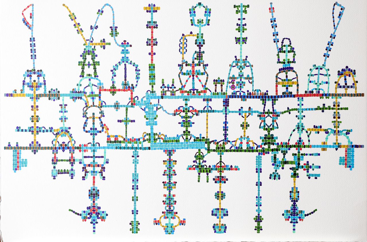 난해한 퍼즐같아 보이는 이정현의 그림엔 나름의 규칙이 있다. 그는 한 옥타브 내 12음 각각에 색을 부여한다. 가사나 멜로디에 따라 떠오른 이미지가 더해지기도 한다. 예를 들어 동요 ‘오빠 생각’의 그림 악보에는 말 탄 오빠와 논밭, 아이가 사는 집이 등장한다.