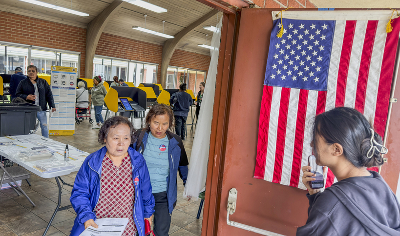 사설. 1. 가주 특별선거가 열린 지난해 11월 4일 LA 한인타운 중앙루터교회에서 투표를 마친 한인 유권자들이 투표소를 빠져나가고 있다. 2. LA한인타운 YMCA에 설치된 가주 특별선거 투표소에서 주민들이 조기 투표를 하고 있다. 3. 크리스티 놈 국토안보부 장관이 지난 13일 애리조나 주 스캇스데일에서 세이브 법안 관련 브리핑을 하고 있다. [김상진 기자, 로이터]