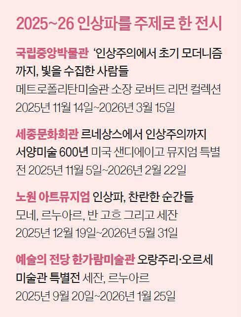전시 관계자가 내게 던진 농담인데 절로 공감이 된다. 인상파 덕분에 미술도 공룡이나 미라만큼 대중의 마음을 움직일 수 있다니 인상파에게 고마워해야 할 것 같다.