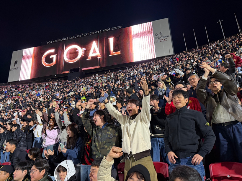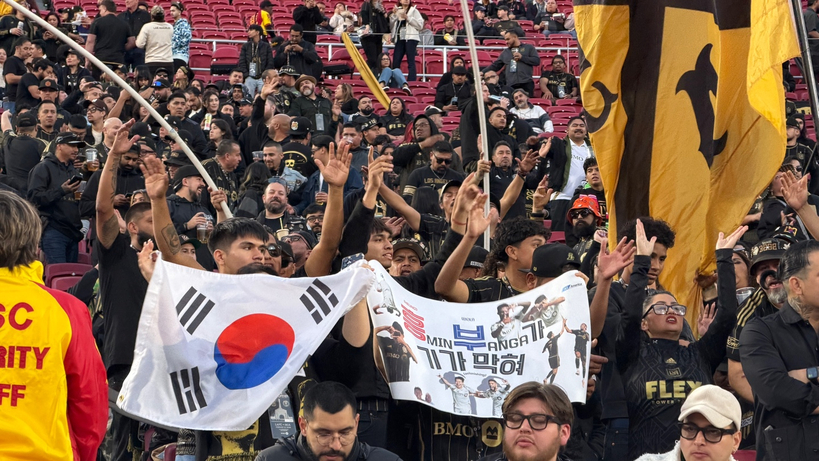 전반 37분, LAFC의 다비드 마르티네스가 선제골을 터뜨리며 균형을 깼다. LAFC가 1-0으로 앞서고 있다. 이날 아주관광(대표 박평식)이 구성한 응원단도 일제히 자리에서 일어섰다. 약 200여 명의 한인 팬들이 한데 모여 단체 응원을 펼치던 중 첫 골이 터지자, 관중석에서는 우레와 같은 환호성이 쏟아졌다.
