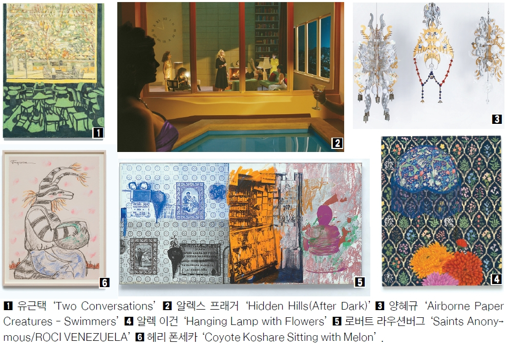 대표 작가 양혜규의 신작을 중심으로 한국 동시대 미술의 확장성을 선보인다. 갤러리 현대는 유근택 작가의 솔로 부스를 통해 대표 연작 ‘분수’를 비롯해 ‘수영장’, ‘두 대화’ 등 20여점을 공개한다.