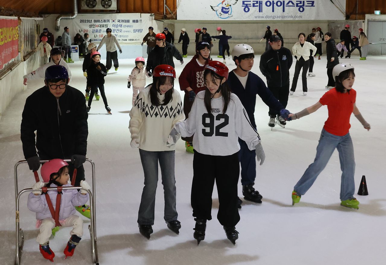 2026 밀라노 동계올림픽 폐막일인 23일 부산 동래구 동래아이스링크에 평소보다 많은 학생과 시민들이 스케이트를 타고 있다. 한국은 금메달 3개 등 10개의 메달을 획득해 종합 13위에 올랐다.