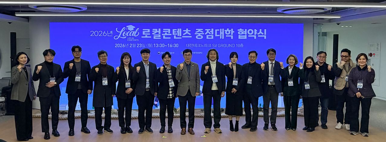 동명대학교는 23일 대전테크노파크 SV 그라운드에서 열린 ‘2026 로컬콘텐츠 중점대학’ 협약식에 참석해 해당 사업에 3년 연속 선정됐다고 밝혔다.