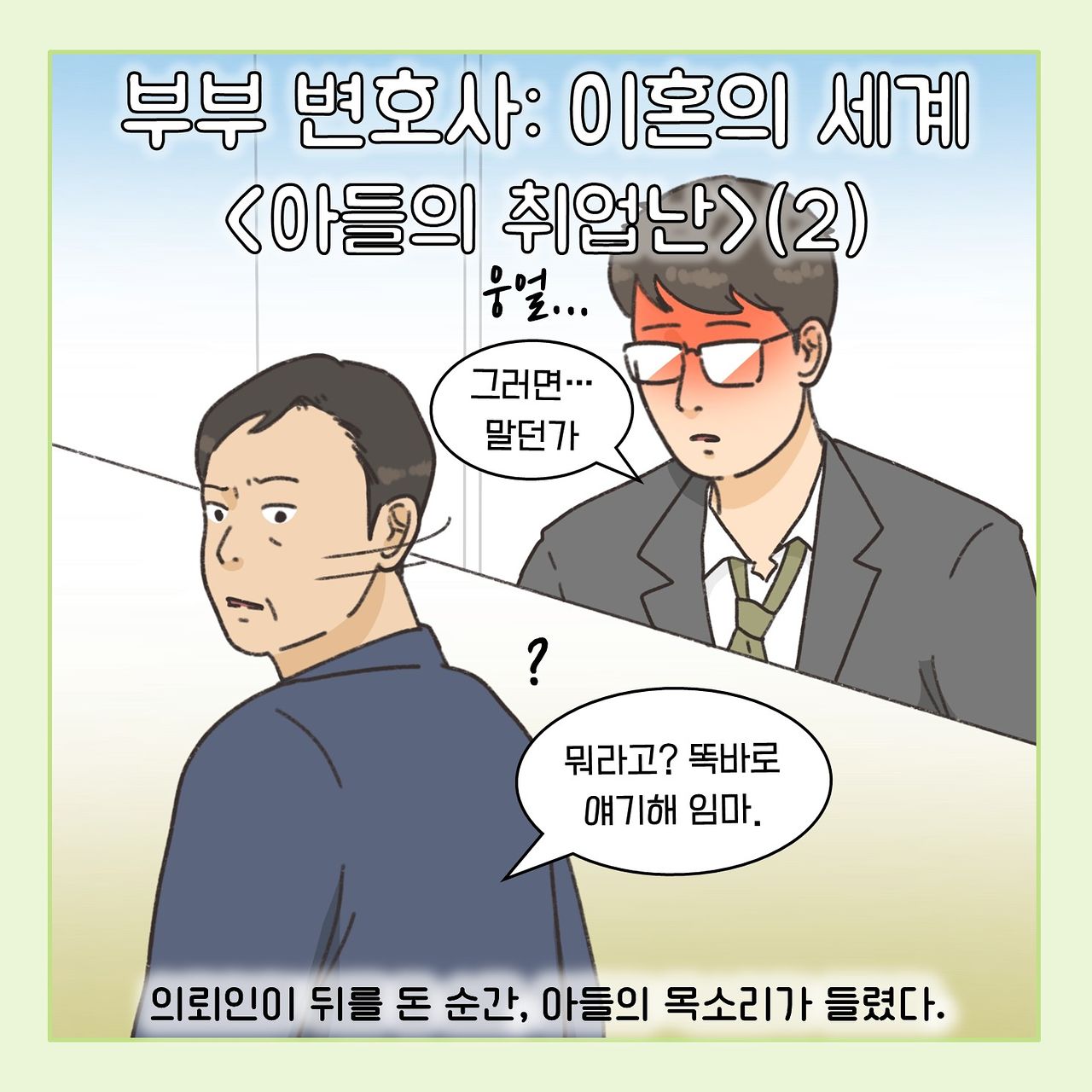 매주 토요일 '부부 변호사 : 이혼의 세계' 웹툰을 연재합니다. 356-360화 함께 싣습니다.