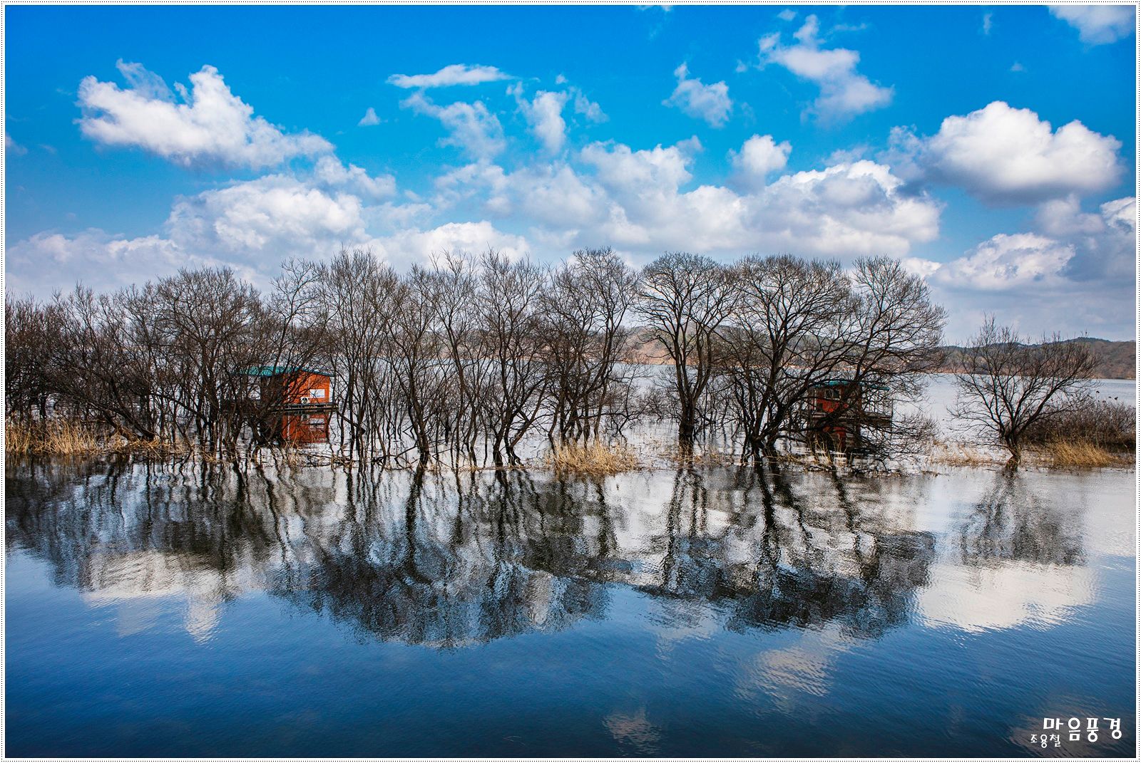 얼어붙었던 호수가 녹아 거대한 거울이 되었다. 충남 예산 예당호. 렌즈 24~70mm, iso 100, f8, 1/125초, -0.33ev.