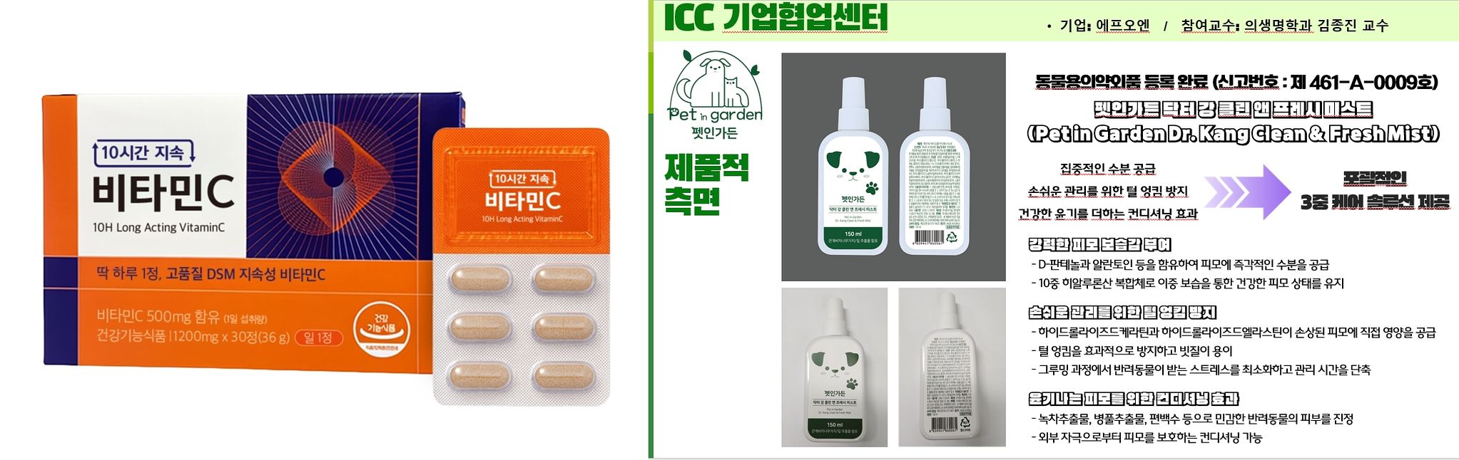 펫바이오 분야에서는 의생명과학과 김종진 교수 연구팀과 협력한 ㈜에프오엔이 전남 생물자원을 활용한 동물용의약외품을 개발해 등록(신고번호 제461-A-0009호)을 완료하고 제품을 출시했다.