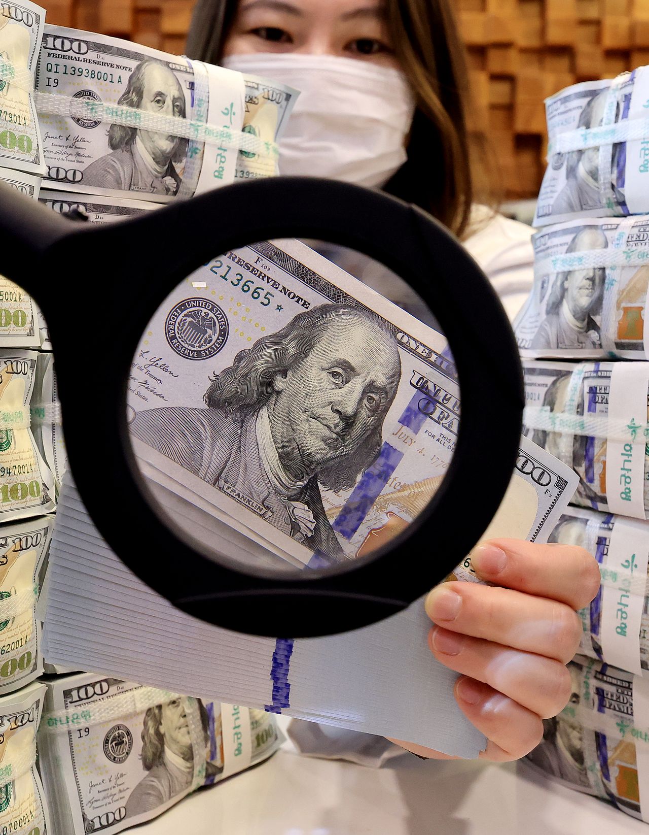 2월 외환보유액(4276억2000만 달러)이 외국환평형기금채권(외평채) 발행에 따른 외화 유입과 자산 운용 수익에 힘입어 석달 만에 증가세로 돌아섰다. 이날 서울 중구 하나은행 본점 위변조센터에서 직원이 달러를 정리하고 있다. [뉴스1]