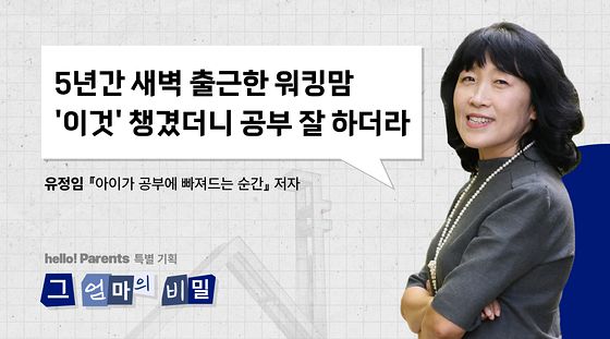 연년생 두 아들을 키운 워킹맘 유정임(59)씨는 “공부는 아이가 하는 것이지, 엄마가 하는 게 아니다”라고 말했다. 라디오 PD였던 그는 두 아이가 한창 공부할 시기 무려 5년간 새벽 5시에 출근하는 삶을 산 ‘열혈 워킹맘’이다. 이모님 손을 빌려 키운 두 아들은 각각 KAIST 물리학과와 서울대 경영학과에 진학했다.
