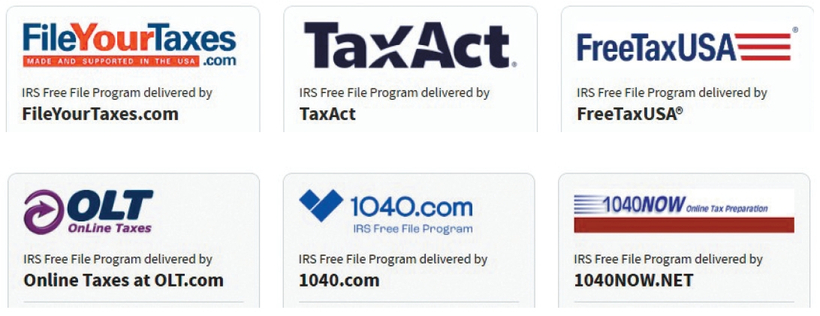 IRS는 세금보고 회사와의 개별적인 계약을 통해서도 무료 세금 보고를 돕고 있다. 이를 위해 IRS는 자체 사이트 페이지( https://apps.irs.gov/app/freeFile/browse-all-offers/)를 따로 마련하고 계약된 회사들을 안내하고 있다. 개별 회사에는 택스액트, 택스슬레이어, 1040.com 등의 회사들이 포함되어 있다. 개별 회사마다 무료 보고의 조건들이 소폭 달라서 관련 조건들을 꼼꼼히 살펴보고 시작해야 한다. 일부 회사들은 현역 군인 납세자들을 대상으로 하며 조정총소득의 기준이 8만, 9만 달러 등으로 각각 다르다.
