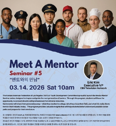 한인회는 오는 14일 오전 10시 LA한인회관(981 S. Western Ave.)에서 ‘밋 어 멘토(Meet a Mentor)’ 행사를 개최한다.