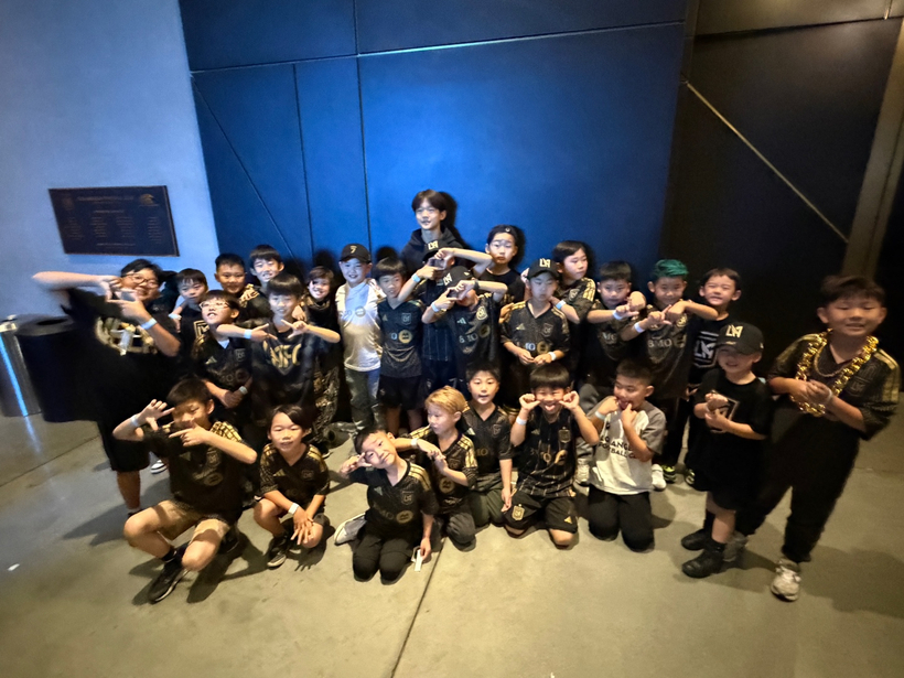 라크레센타 지역 몬테비스타 초등학교에 재학 중인 한인 학생 30여 명도 단체로 BMO 스타디움을 찾아 손흥민의 첫골을 간절히 바라며 열띤 응원을 펼치고 있다.
