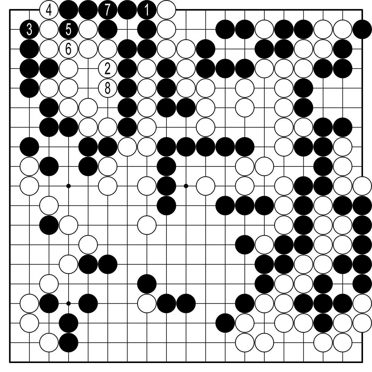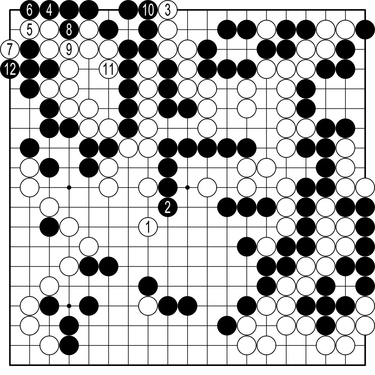 ◆실전 진행=한 치 앞이 안 보이는 짙은 안개 속에서 서서히 윤곽이 드러난다. 수상전은 놀랍게도 흑 승이었다. 목진석은 특유의 감각으로 패망선인 1선을 기어 나갔는데(흑4, 6) 이 수가 수상전을 승리로 이끈 묘수였다. 흑12에서 펑리야오는 항복했는데 계속 더 두면 이 수상전은 빅이 된다. 백이 전멸한 것이다. 오랜 국가대표 감독을 마치고 선수로 돌아온 목진석은 45세의 나이에 멋진 바둑을 보여줬다.