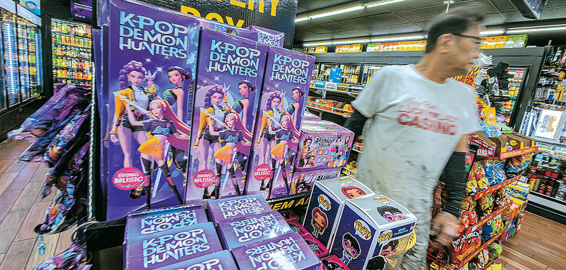 LA 한인타운의 한 리커스토어에 '케이팝 데몬 헌터스' 캐릭터가 담긴 미스터리 박스가 진열돼 있다. 이 박스안에는 캐릭터가 랜덤으로 들어가 있다. 박스당 20달러에 판매된다. 김상진 기자
