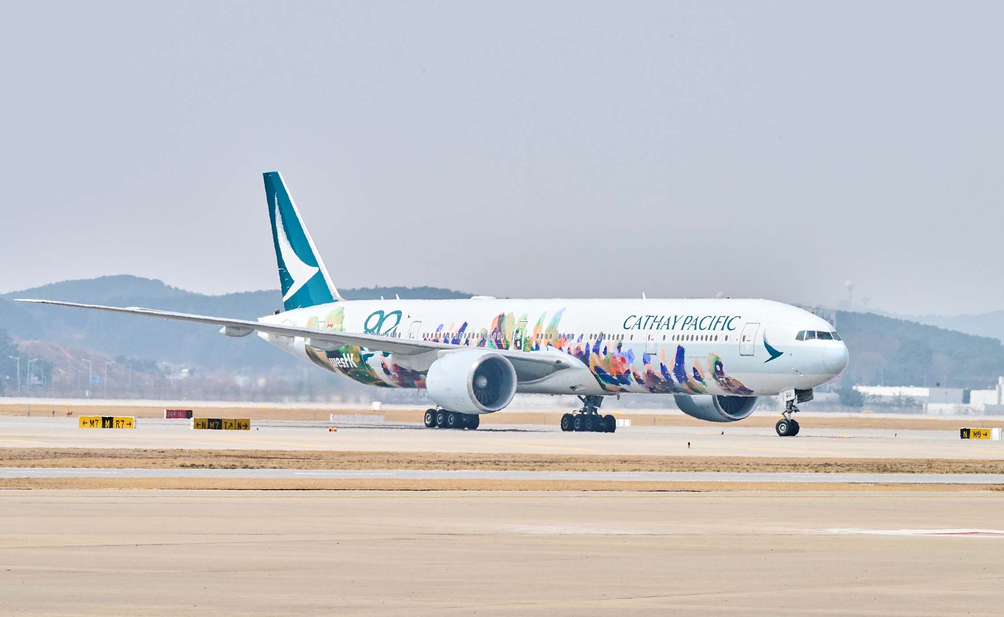 [포토타임] ‘Spirit of Hong Kong’ 착륙… 캐세이 80주년 특별 도장기 공개